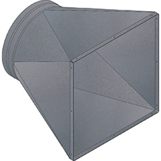 • Connection flange for rectangular outlet of , to make the connection to a circular duct easier.