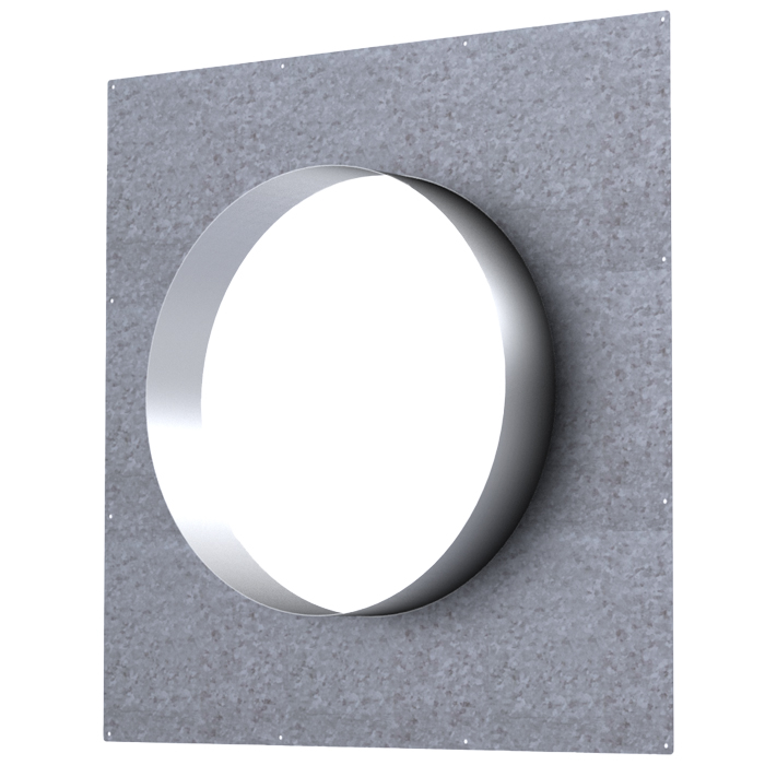 • Circular outdoor flange with bird guard made of galvanized steel.